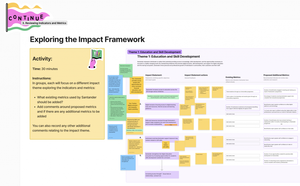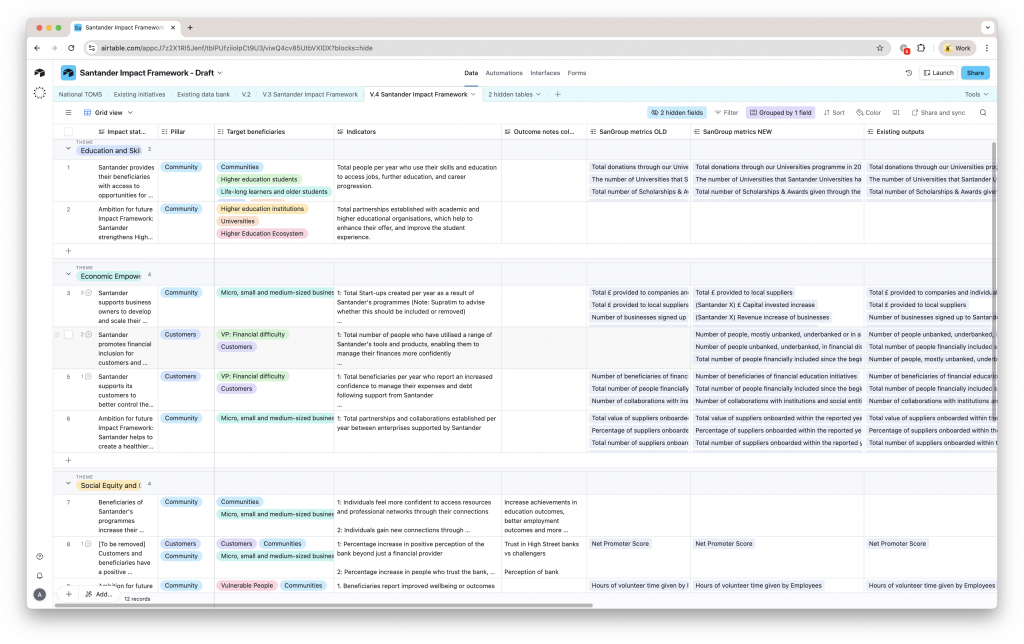 Santander UK’s Social Enterprise team needed an impact framework that satisfied competing organisational priorities: UK board simplification requirements versus Group-level international reporting complexity, whilst balancing commercial objectives with social impact goals under strict financial sector regulations.