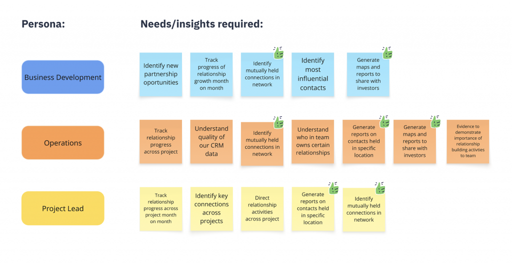 Under my leadership, the team delivered a research-informed tool that achieved measurable improvements in relationship data quality and user engagement for Socius, providing them with more robust insights to demonstrate their progress to project investors.
